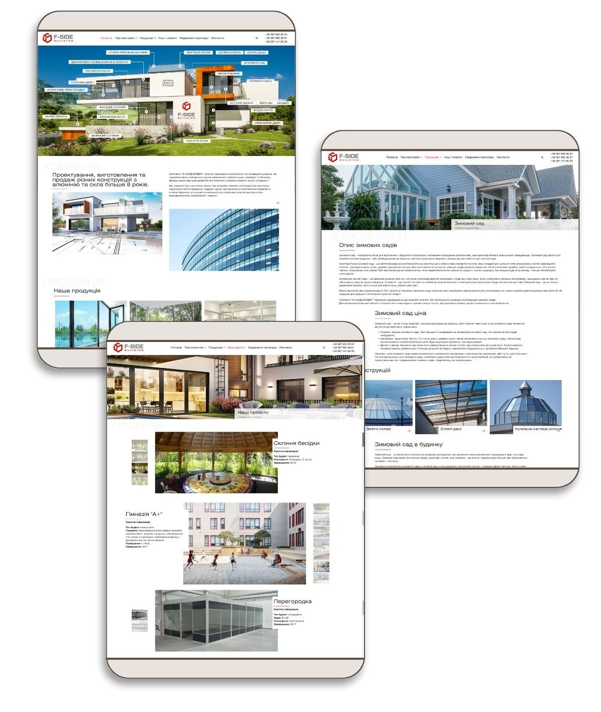 Компанія “Ф-САЙД БІЛДІНГ” здійснює проектування, виготовлення та продаж різних конструкцій з алюмінію та скла більше 8 років. Створює високоякісні та інноваційні рішення, які задовольняють найвибагливішим побажання замовників і забезпечують комфорт та безпеку. Досвід фахівців дозволяє виготовляти унікальні проекти різної складності.